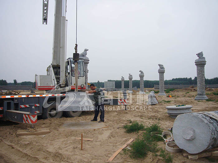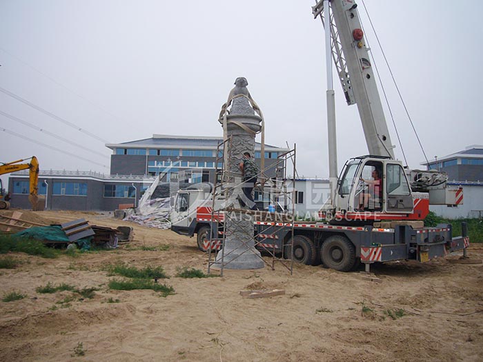 十二生肖雕塑采用云彩雕刻的柱子形式展現十二生肖的神話故事,整體表現的栩栩如生。